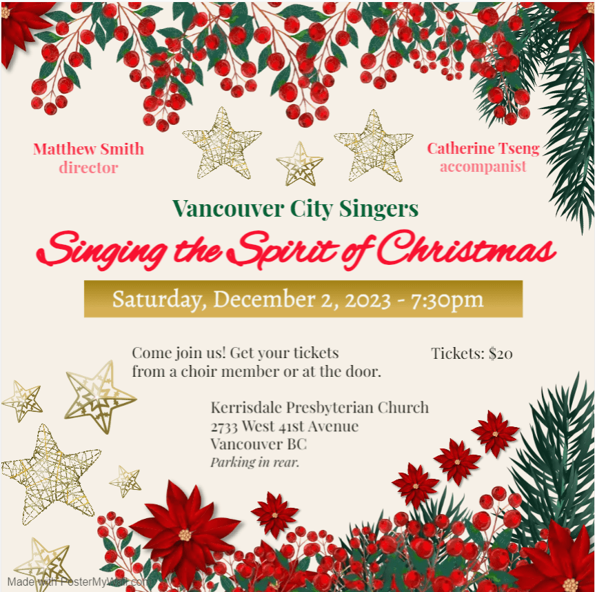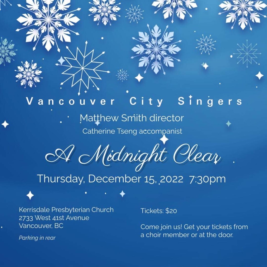 December 15, 2022 Christmas Concert with Vancouver City Singers, accompanying the whole concert and performing as a piano soloist